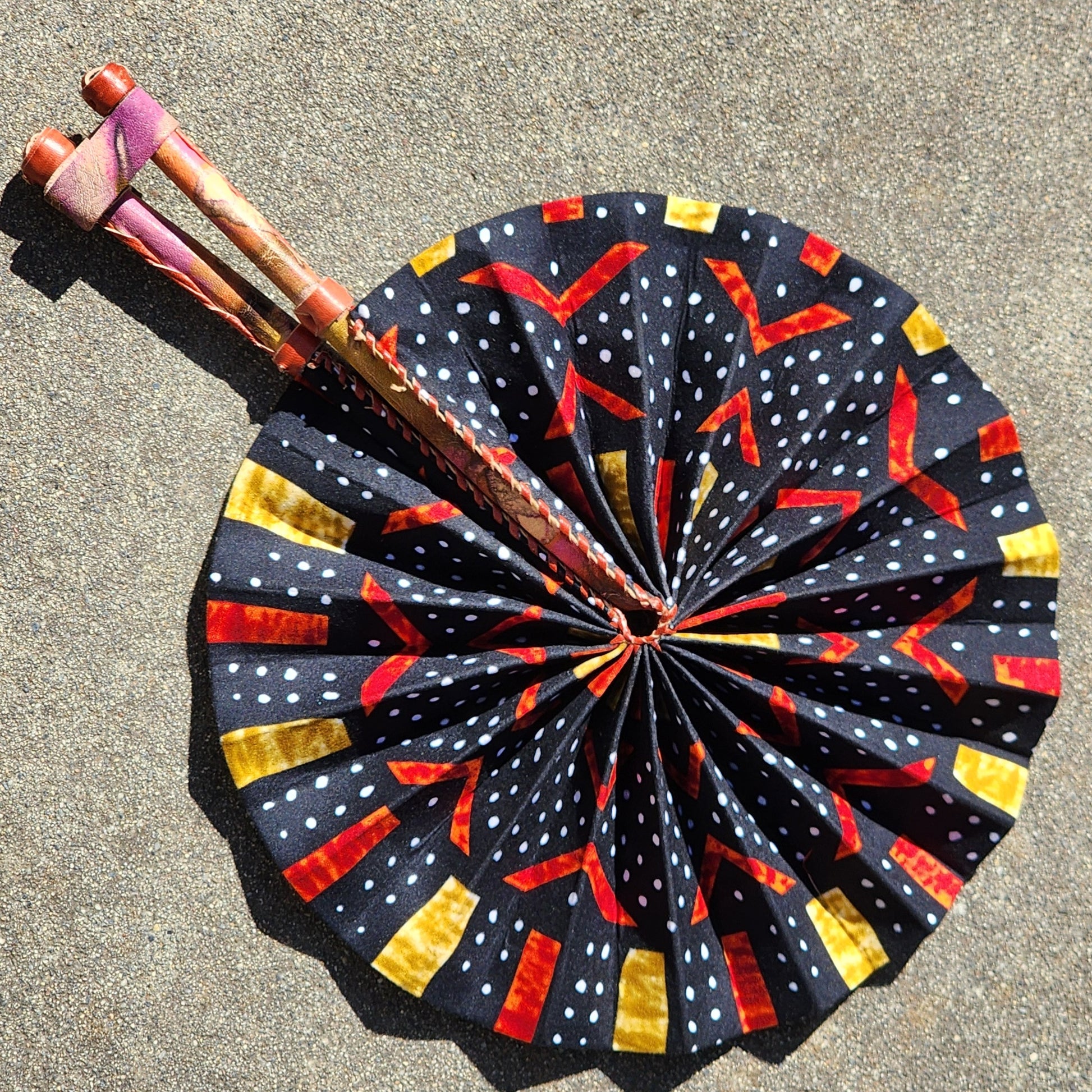 Connect to your feminine energy with this beautifully crafted Ankara and leather fans. As you fan yourself, envision Goddesses, Empresses, Queens, your ancestors and other powerful women having done the same.