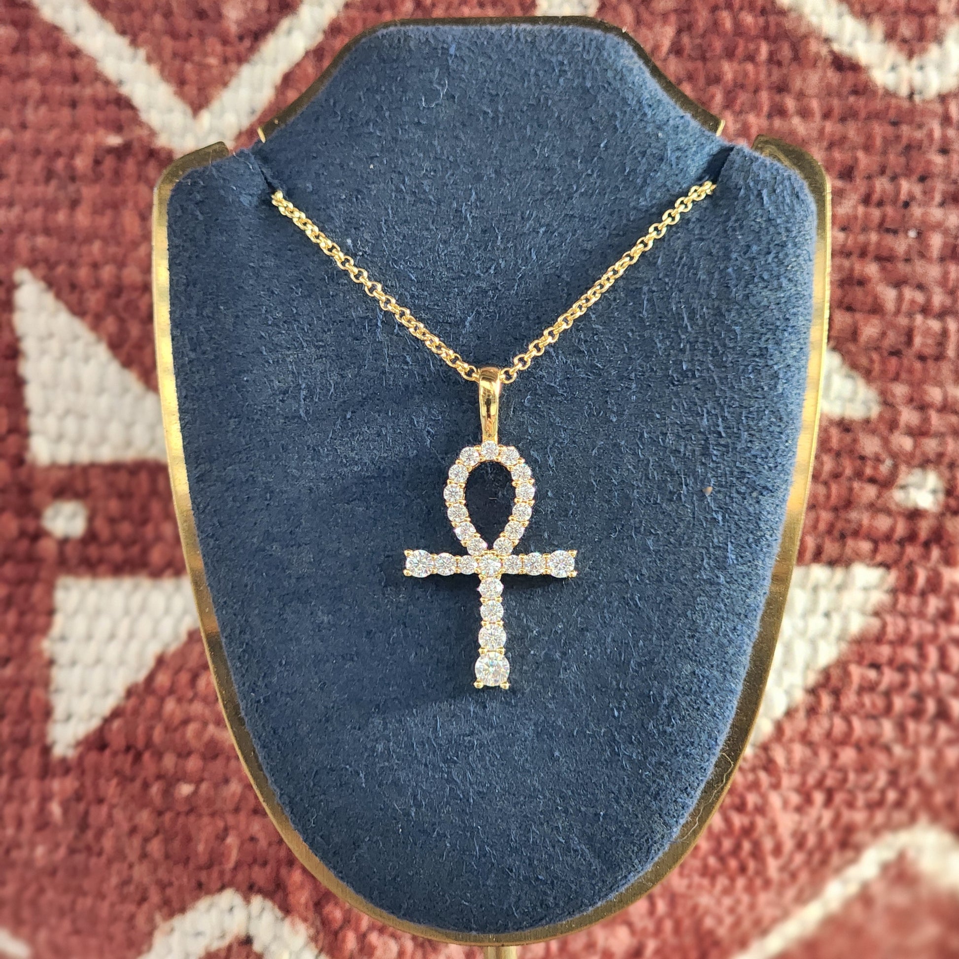 Illuminate your look with this stunning Moissanite Ankh Necklace, a timeless symbol of life, power, and divine protection. Hand-crafted from .925 sterling silver and luxuriously plated in 18K gold, this radiant piece blends ancient symbolism with modern elegance.