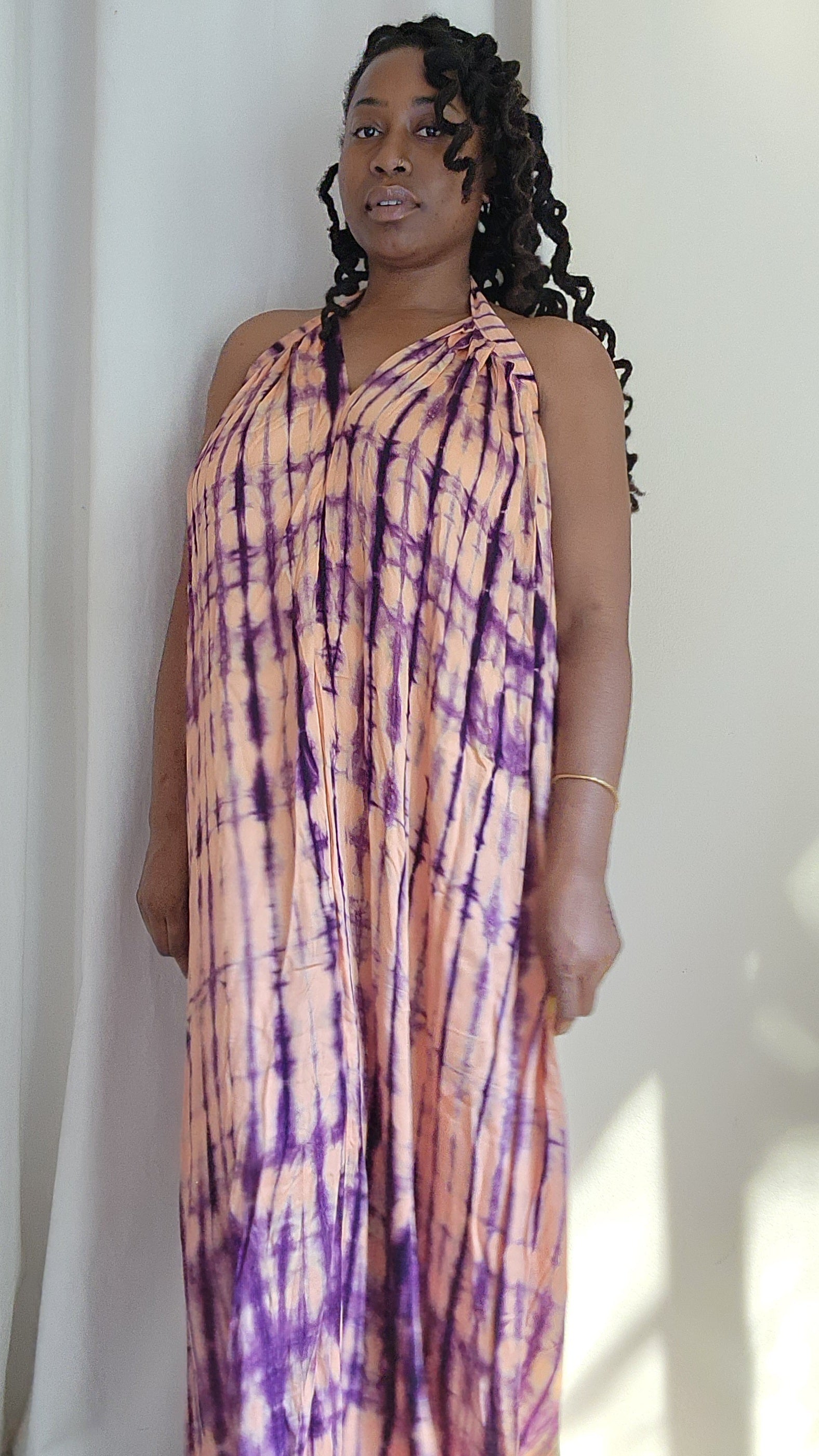 Convertible maxi dress can be worn 5 different ways. This Lady of Leisure dress is a bold and luxurious way to clothe your body during the summer, while on vaction or just lounging at home. Pair with you favorite sandals or sneakers to complete the look. One size dress, fits up to a size 2XL.