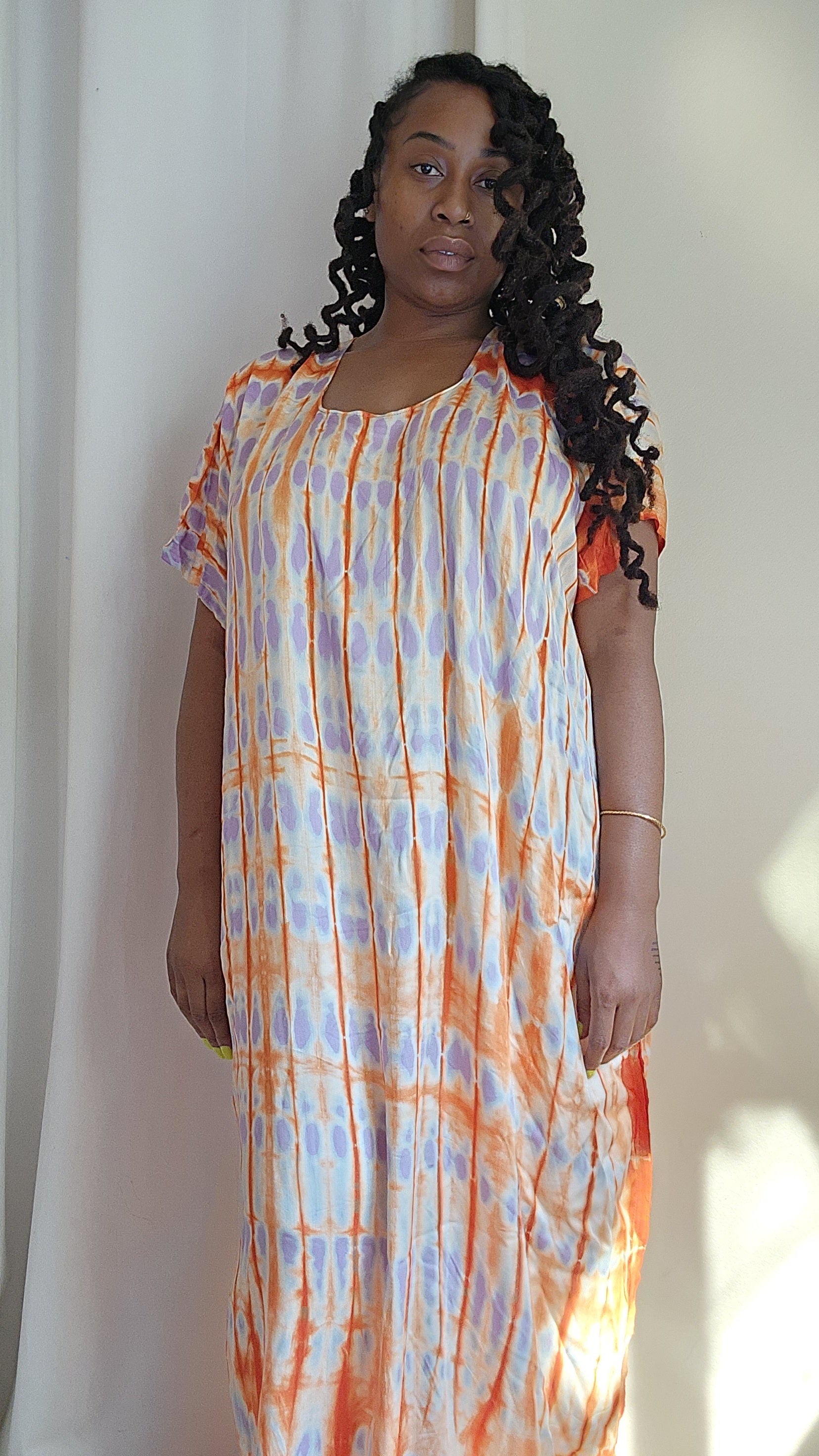 This Kaftan Maxi Lady of Leisure dress is a bold and luxurious way to clothe your body during the summer, while on vaction or just lounging at home. Pair with you favorite sandals or sneakers to complete the look. One size dress, fits up to a size 2XL.