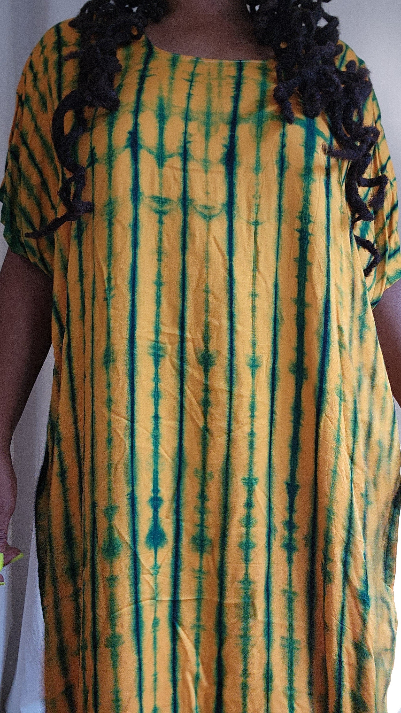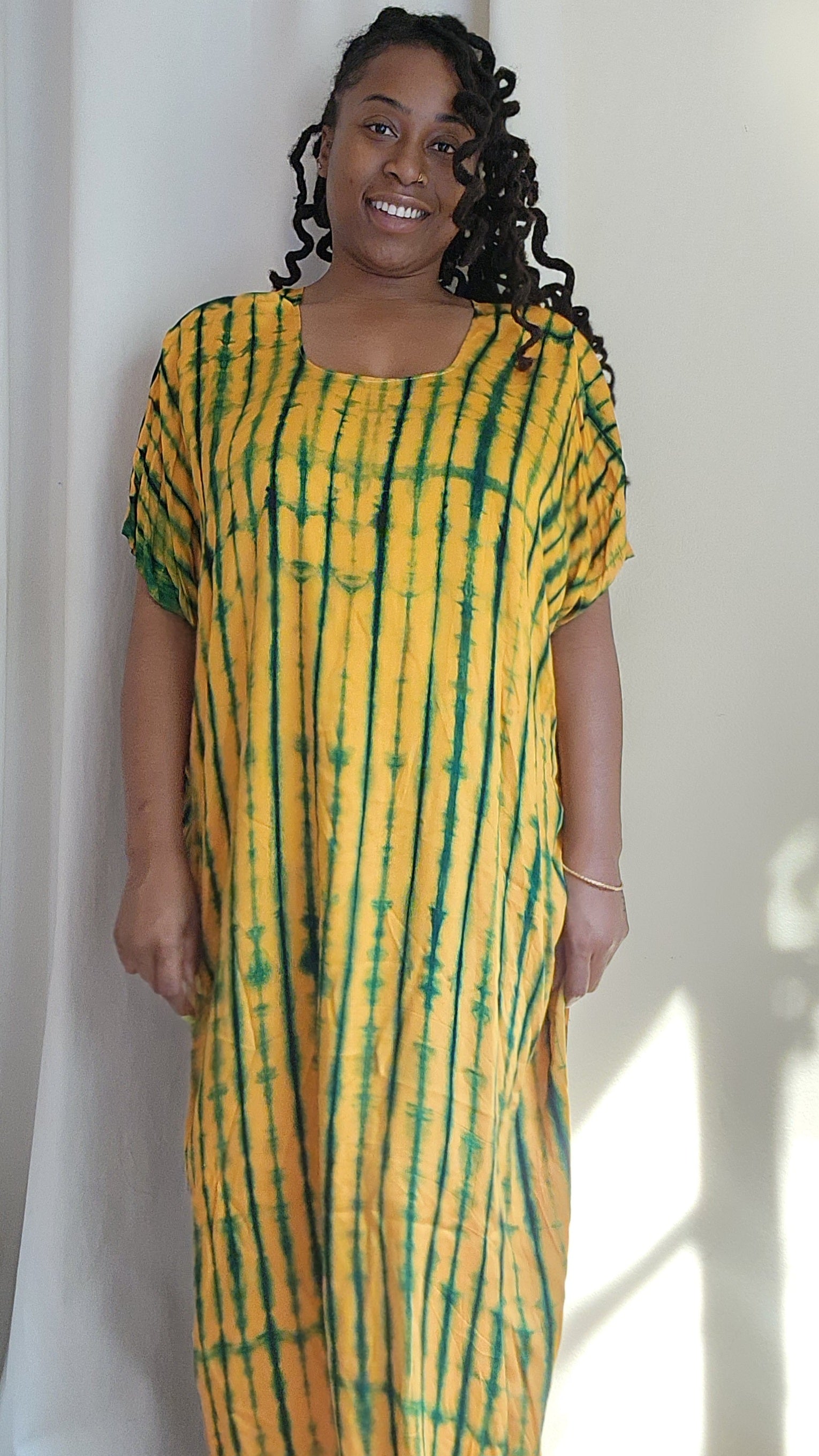 This Kaftan Maxi Lady of Leisure dress is a bold and luxurious way to clothe your body during the summer, while on vaction or just lounging at home. Pair with you favorite sandals or sneakers to complete the look. One size dress, fits up to a size 2XL.