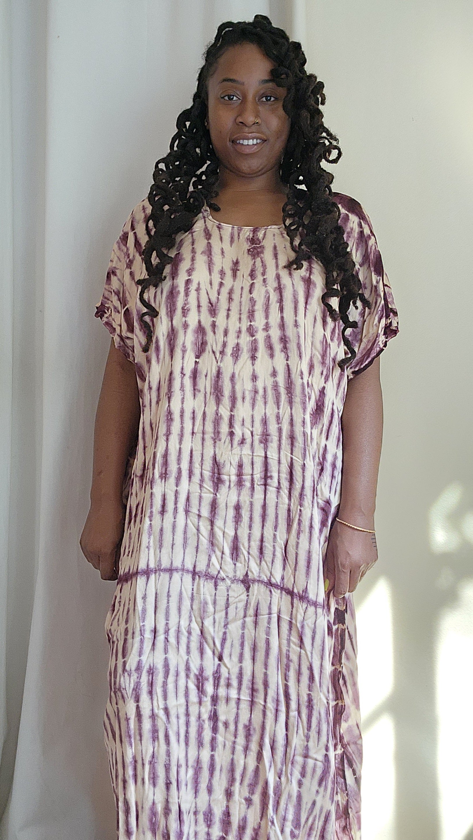 This Kaftan Maxi Lady of Leisure dress is a bold and luxurious way to clothe your body during the summer, while on vaction or just lounging at home. Pair with you favorite sandals or sneakers to complete the look. One size dress, fits up to a size 2XL.